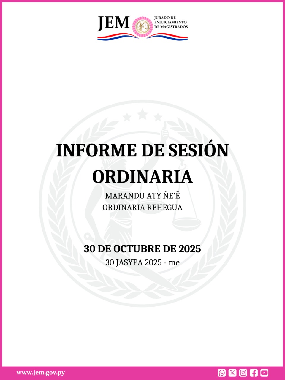 1- El Secretario Jurídico informó sobre las Publicaciones de Edictos para Miembros del Tribunal de Ética JEM, que; a partir de la última publicación, los interesados tienen 30 días para realizar sus presentaciones. El plazo para el efecto se cumplirá el 20 de Noviembre del 2025.