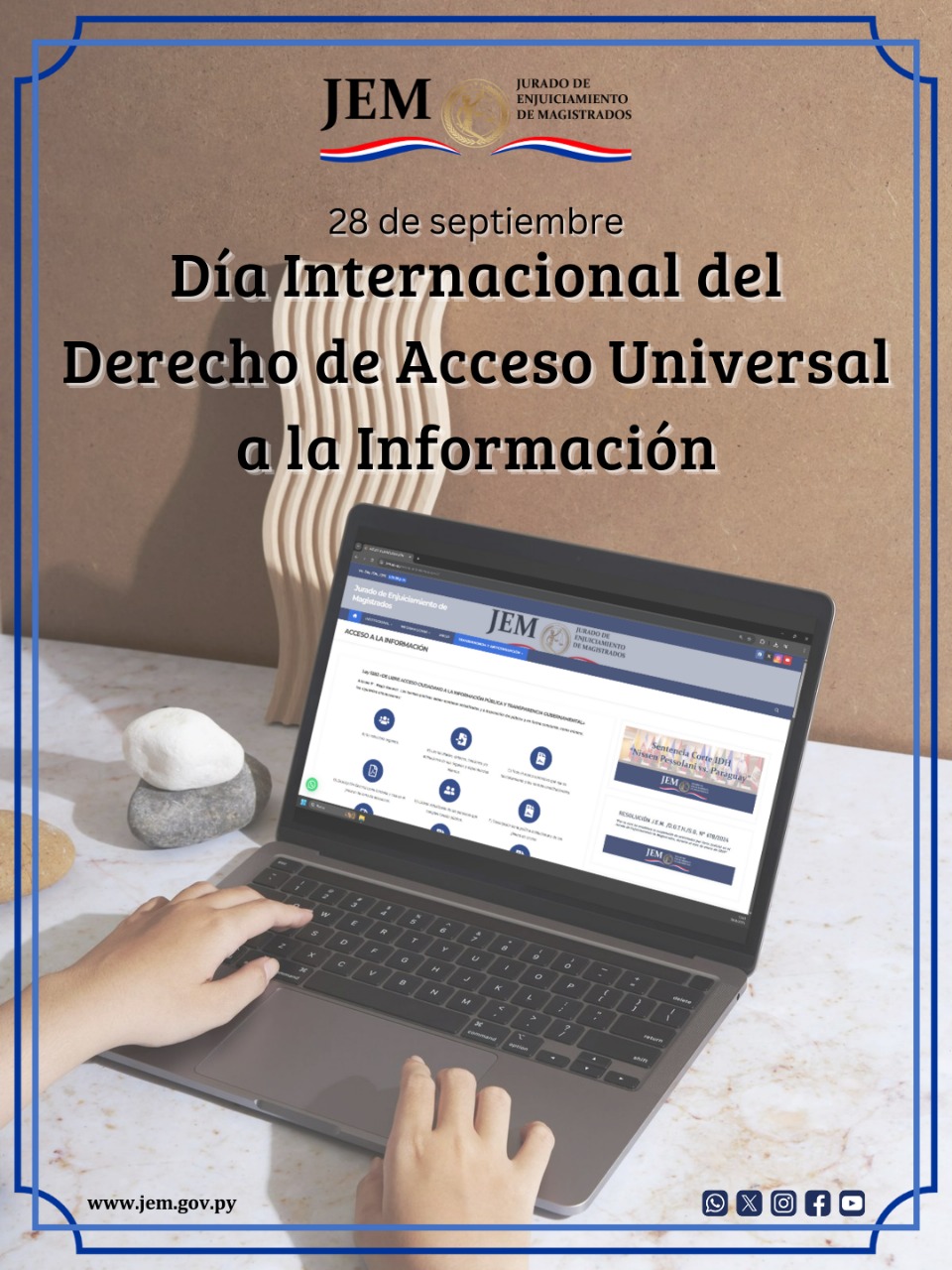 El Jurado de Enjuiciamiento de Magistrados, se suma a la celebración por este día, recordando a la ciudadanía que la institución cuenta con una Oficina de Atención a la Ciudadanía, habilitada para brindarle información y asesoramiento, a través de una 𝙇í𝙣𝙚𝙖 𝘿𝙞𝙧𝙚𝙘𝙩𝙖 𝙙𝙚 𝙒𝙝𝙖𝙩𝙨𝘼𝙥𝙥 +595 21 443 389.